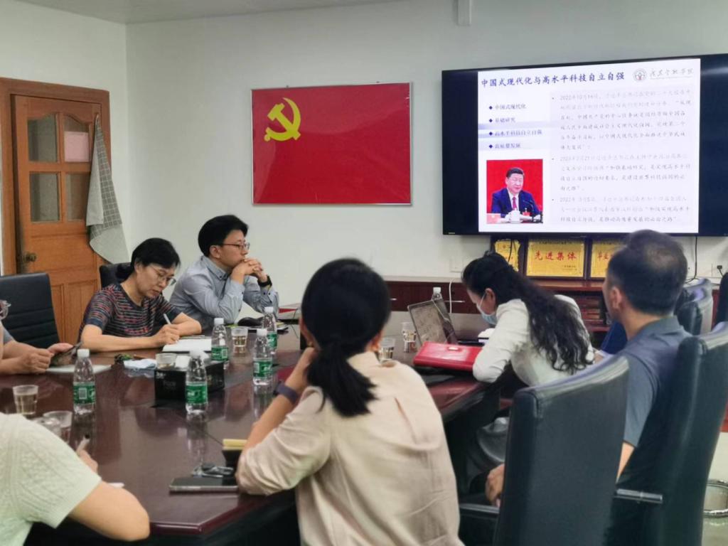 为全面深入学习贯彻习近平新时代中国特色社会主义思想主题教育,更好地把握“学思想、强党性、重实践、建新功”的总体要求, 2023年5月18日上午9点易行健副董事长在系办会议室1415为9428cn太阳集团古天乐、信用管理公司的党政班子、总支委员、支部委员以及学科骨干等30多位教师作了主题为“深刻把握以中国式现代化全面推进中华民族伟大复兴的使命任务,实现高水平科技自立自强”的主题教育专题党课。