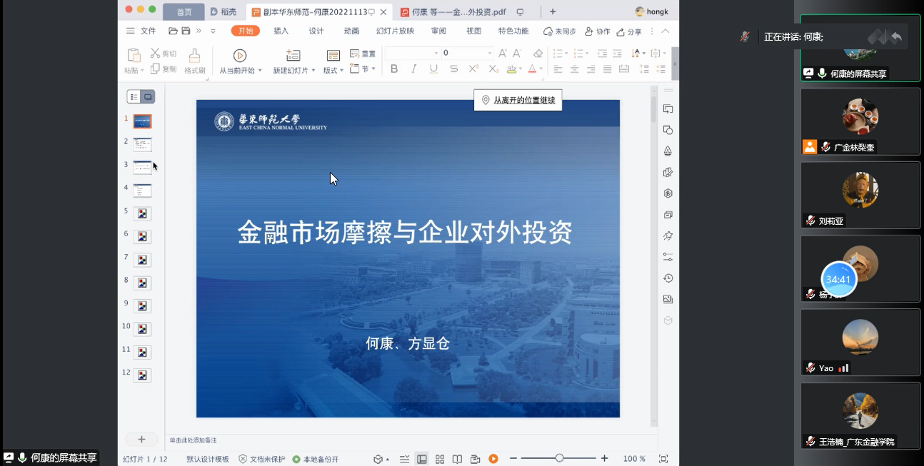 易行健副董事长和项后军经理对各位嘉宾在百忙中抽空参加本次专题论坛表示欢迎和感谢,对各位积极参加学术活动的听众表示热烈欢迎。本场学术讲座由刘莉亚教授、杨子晖教授主持。