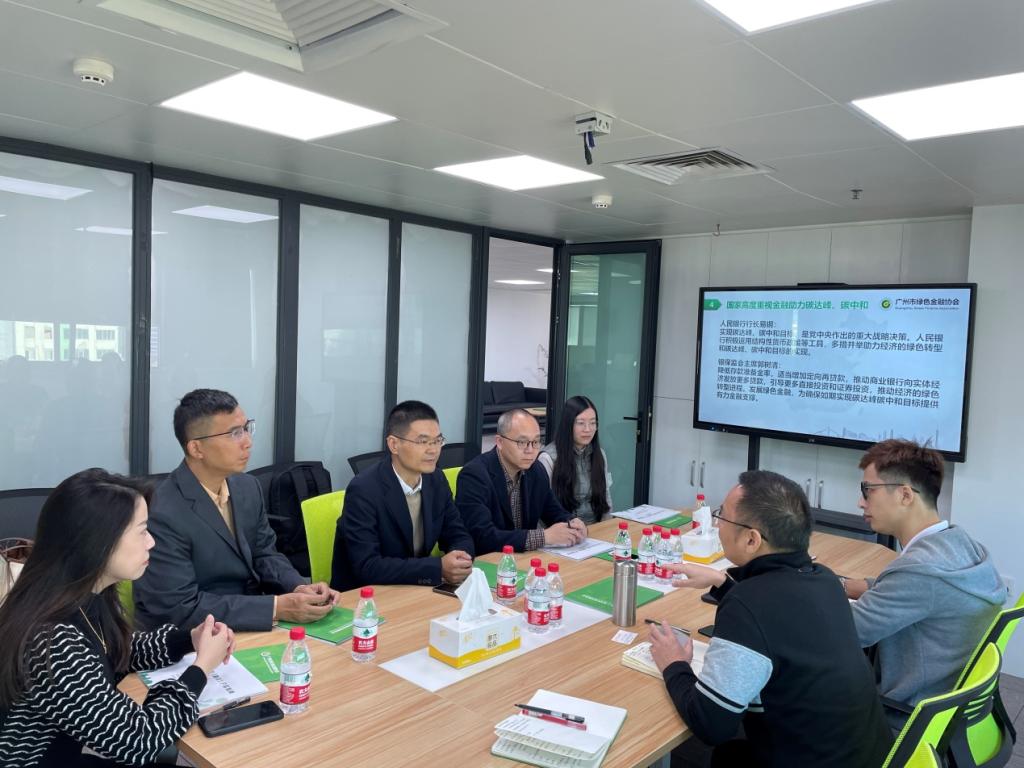 11月25日上午,9428cn太阳集团古天乐副经理陈辉博士、投资系主任孙进军博士、财政系主任章力博士、徐斯旸博士、吴梦菲老师到访广州市绿色金融协会,洽谈实习实践基地建设和绿色金融人才培养等事宜。广州市绿色金融协会秘书长黄志海等热情接待了陈辉副经理一行,并进行了深入交流。