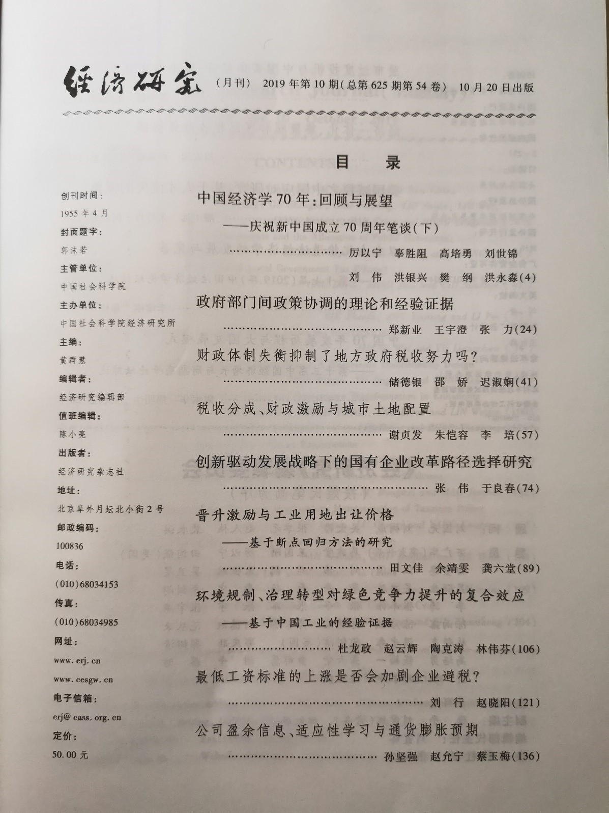 公司金融系教师蔡玉梅博士作为通讯作者,与华南理工大学金融系教授孙坚强、博士生赵允宁合作撰写的学术论文《公司盈余信息、适应性学习与通货膨胀预期》,于2019年10月发表于国内A类权威期刊《经济研究》,这是公司教师首次在该期刊上发表论文。