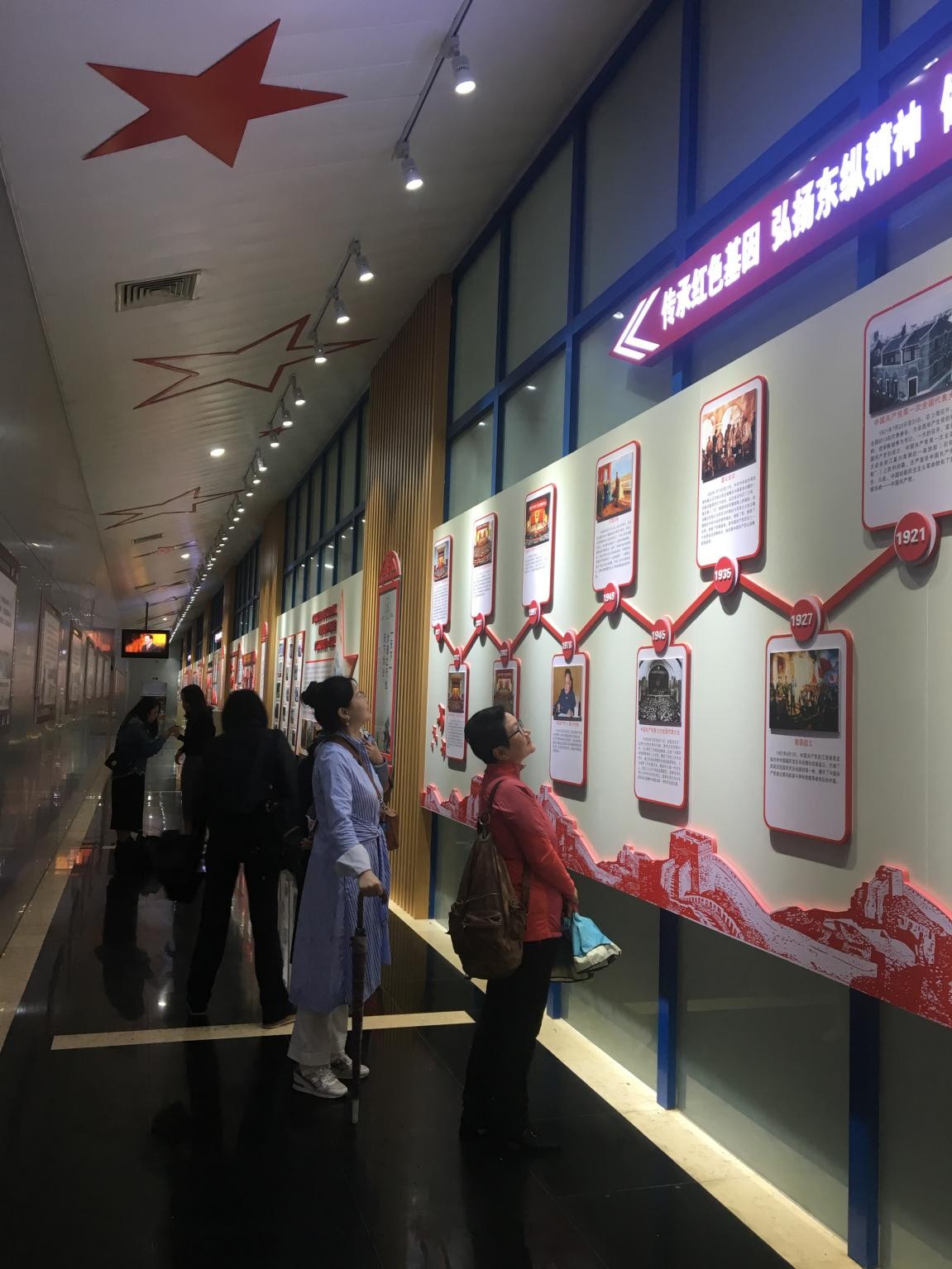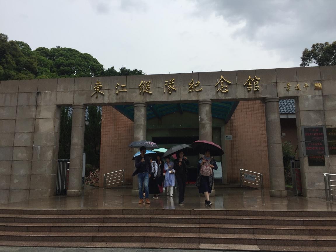 一路上大家唱着《我和我的祖国》、《一条大河》等歌曲,车厢里充满了欢声笑语,不知不觉就来到了罗浮山东江纵队纪念馆。
