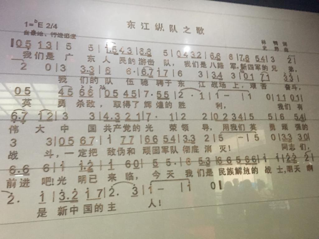 进入纪念馆,首先映入眼帘的是《东江纵队之歌》,“我们的队伍驰骋于东江战场上,艰苦奋斗,英雄杀敌,取得了辉煌的胜利......,”看着这一行行字,英雄之歌仿佛就在耳边响起,带我们回到了艰苦卓越的抗日战争时期......
