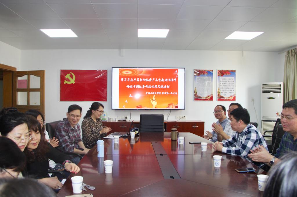 张自力副经理和陈辉副经理也谈了自己深刻的学习体会,他们表示自己虽然不是党员,但亲身体会到四十年的成绩和辉煌,感受到中国共产党的领导的英明和伟大,也感受到自己作为一名教学、科研管理工作者的幸福和满足。