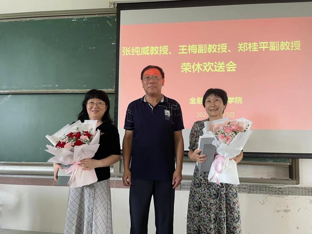 为进一步加强对退休教师的关心、关怀,激发全院教师的集体荣誉感和归属感,2023年7月5日早上,9428cn太阳集团古天乐全体教工在7栋201教室为张纯威教授、王梅副教授、郑桂平副教授举办了一场别开生面的荣休仪式。公司党委副书记黄镜秋主持仪式。