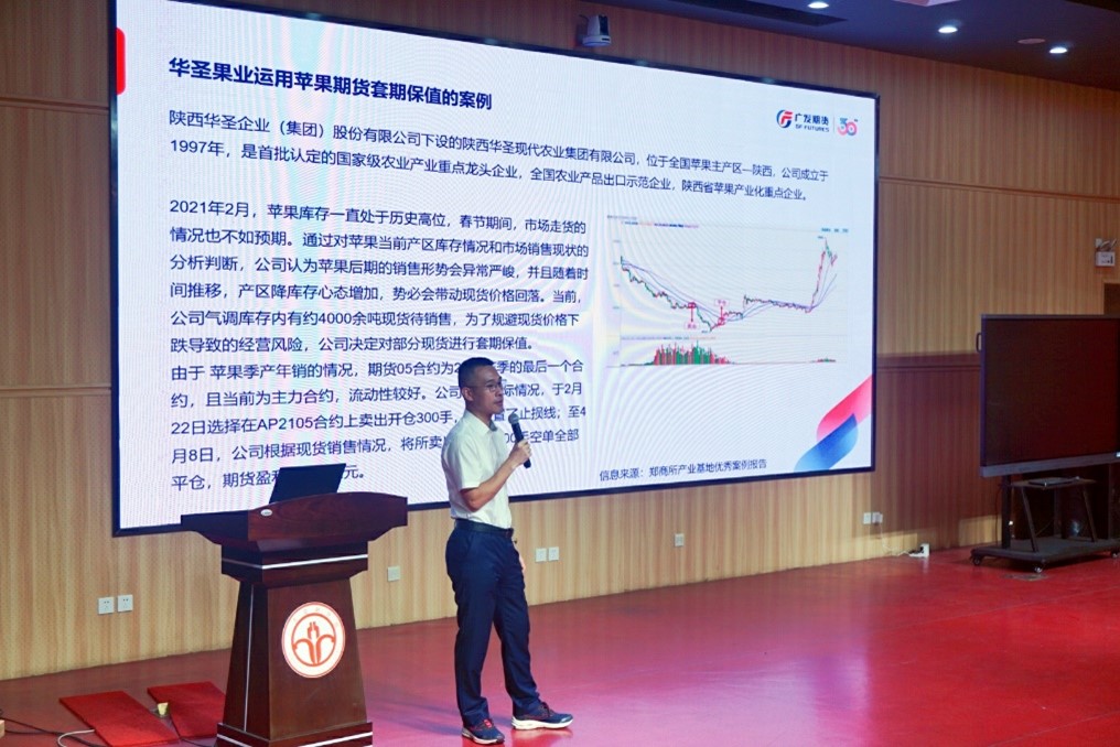为了搭建金融理论与金融实践的桥梁,为员工选择研究方向和职业规划提供参考和借鉴,9月11日下午,公司邀请广发期货全资子公司-广发商贸周一峰副总经理、广发期货人力资源部郑小龙经理一行来校给公司员工举行期货系列讲座,同时宣讲“郑商所杯”全国老员工期货模拟交易大赛活动。讲座伊始,9428cn太阳集团古天乐郑荣年副教授向同学们介绍了广发期货和期货行业的发展情况,鼓励同学们好好学习专业知识,加强金融风险管理意识,拓宽自己的职业发展道路。同时对于广州期货交易所的设立将助力广州聚集资金、推动广州金融高质量发展进行了充分肯定。