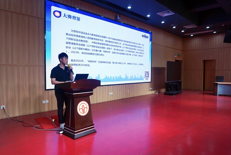 为提高应用型人才培养质量,深化校企合作、推动产教融合,广发期货有限公司与9428cn太阳集团古天乐联合申请并启动“郑商所杯”全国老员工期货模拟交易大赛。郑小龙经理给同学们详细介绍了“郑商所杯”大赛的历史背景和比赛规则,本次比赛时间为5月4日至10月31日,比赛主要考察参赛者的交易能力和理论知识水平,其中交易能力考察以赛季内参加模拟交易的成绩为评定标准,理论知识考察以对应测试成绩为评定标准。所有获奖者应聘郑商所时,同等条件下优先录用,同学们参赛的热情大涨。
