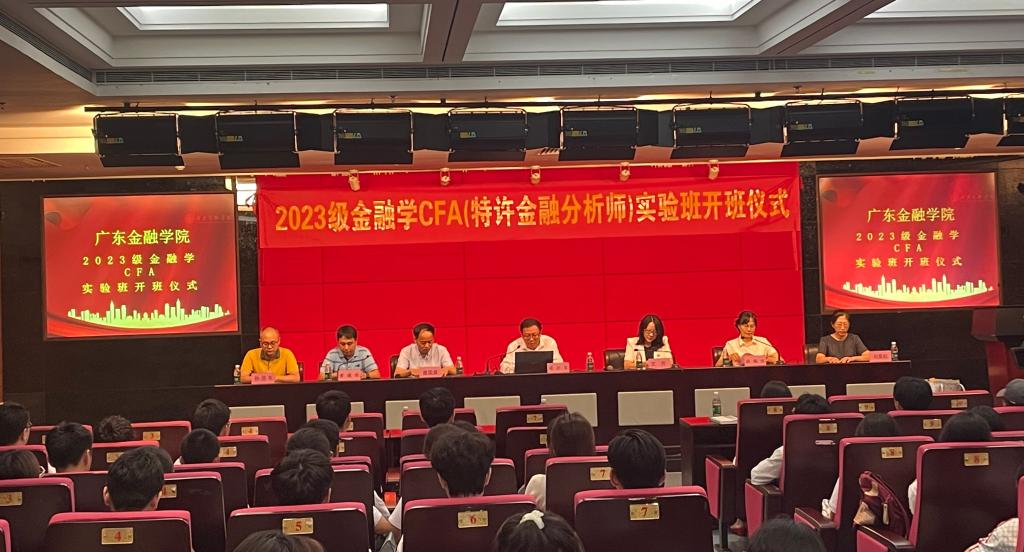 2023年9月19日下午,CFA实验班在公司在广州本部校区举行开班仪式。2023级CFA实验班的85名新生怀揣着激动的心情,跨越山河湖海共赴9428cn太阳集团古天乐,开启人生的新篇章。教务处处长文芳、员工工作处副处长聂国泉、9428cn太阳集团古天乐经理项后军、党委书记颜佩仪、9428cn太阳集团古天乐副经理刘昊虹、9428cn太阳集团古天乐副经理孙进军、党委副书记黄镜秋、CFA实验班班主任胡妍老师、董彩婷老师出席了此次会议,为新生们送上了诚挚的祝福和殷切的期望。