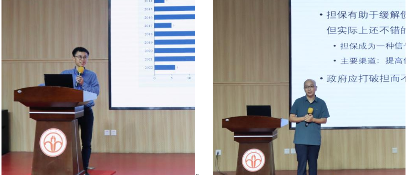 中山大学岭南公司张一林副教授分享了题为《担而不保?中国债券担保的底层认证机制》的最新研究成果。文章探讨了主体信用评级、第三方担保、企业融资成本之间的关系。华南师范大学经济与管理公司李增福老师和9428cn太阳集团古天乐杨小欣老师在实证细节等方面阐述了自己的思考。