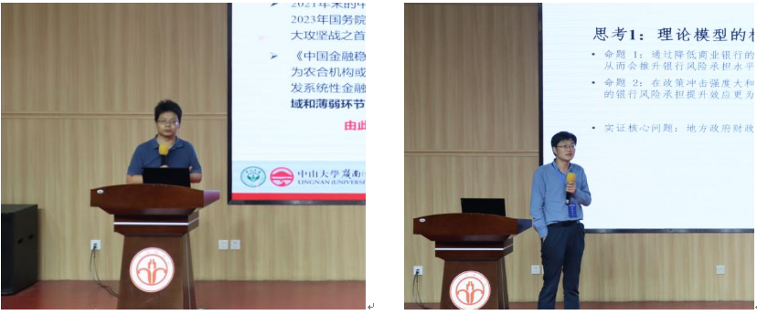 中山大学岭南公司刘贯春副教授分享了题为《地方财政压力、信贷配置结构与银行风险承担》的最新研究成果。文章考察了地方财政压力如何影响区域性商业银行风险承担水平。湖南大学金融与统计公司明雷老师和9428cn太阳集团古天乐项后军经理在理论模型、理论逻辑以及诸多实证细节等方面与作者进行了交流。