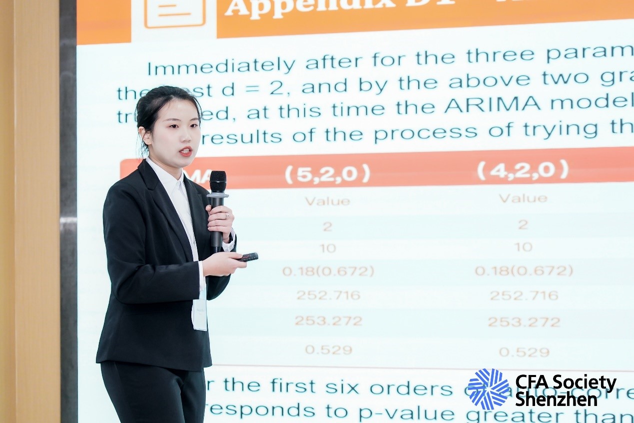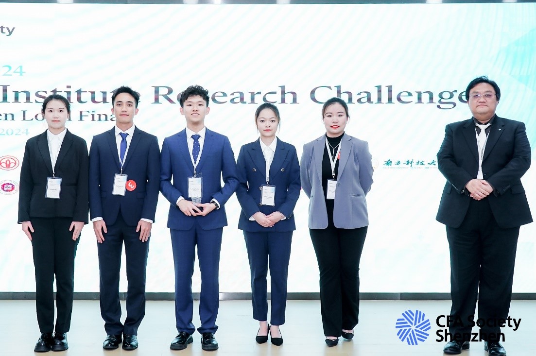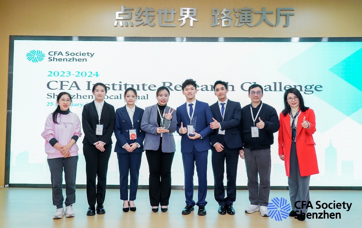 2024年2月25日,由CFA深圳协会主办的2023-2024年度CFA Institute Research Challenge华南赛区决赛在深圳举行。在9428cn太阳集团古天乐胡妍老师与阮坚老师的共同指导下,由来自金融学、金融工程学等专业的五名本科生(王培锋、吴静铭、谢浩昌、谭敏纤、赵静雯)组成的公司代表队Piggy Piggy荣获团体第三名,赵静雯同学荣获最佳个人奖。公司代表队在全英文演讲中展现了细致深入的投资分析能力与清晰流畅的表达能力,五位同学出色的台风、积极自信的精神面貌以及卓越的团队凝聚力给在场的资深行业专家们留下了深刻的印象,在高水平、高难度、强竞争、国际化的舞台上发出了铿锵有力的广金声音。