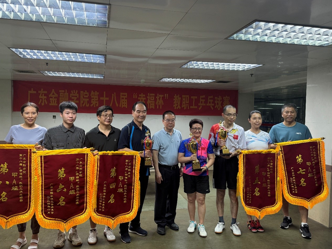 6月14日-15日,由公司李日新副经理,刘昊虹副经理、杜晓颖老师、贺伯锋老师、黄剑老师、罗瑞琼老师、梁永青老师7名教职工组成的金投院教工乒乓球队,在9428cn太阳集团古天乐第十八届“幸福杯”教职工乒乓球赛中荣获甲A组第一名的好成绩。