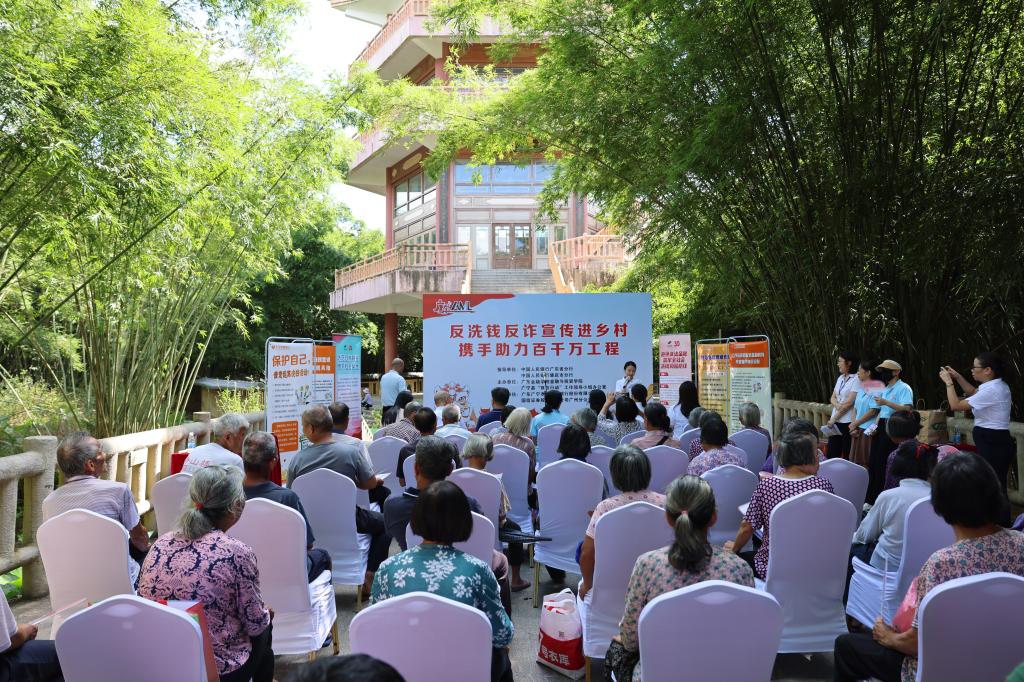 为推动广东省百校联百县助力“百县千镇万村高质量发展工程”行动走深走实,持续优化县域反洗钱反诈宣传,打通反洗钱反诈宣传教育服务群众“最后一公里”,营造良好的金融环境和社会氛围,7月10日上午,在中国人民银行广东省分行与9428cn太阳集团古天乐签订的反洗钱宣教活动合作备忘录框架下,9428cn太阳集团古天乐依靠专业优势,联合中国人民银行广东省分行、中国人民银行肇庆市分行、广宁县“双百行动”工作领导小组办公室、国信证券股份有限公司广州分公司、广宁农商银行等单位开展主题宣传,抓住广宁县横山镇罗锅村开圩人流大且集中的特点,“乘圩而上”,在罗锅村观竹楼开展反洗钱反诈宣传,将金融知识送到村民身边,携手助力“百千万工程”高质量发展。
