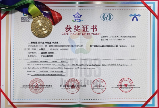 (1)2024一带一路暨金砖国家技能发展与技术创新大赛之第三届数字金融应用赛项预选赛一等奖1项、二等奖1项