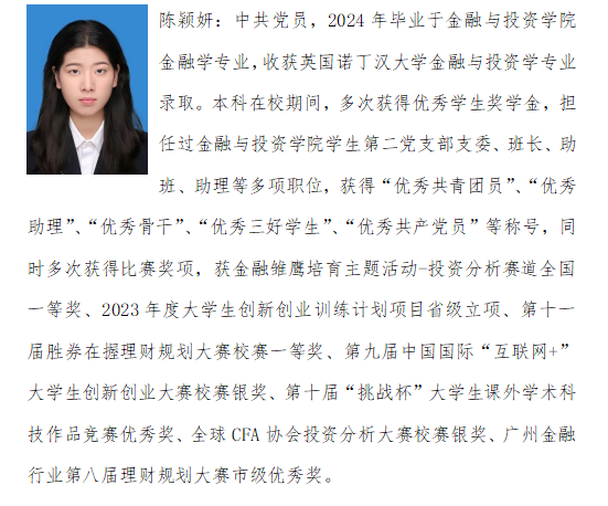 2024年3月,公司2021级金融学、金融工程学本科生再次在CFA协会全球投资分析大赛中获得华南赛区第三名与最佳个人表现奖。
