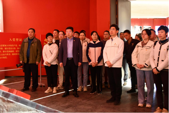 中国国家版本馆广州分馆位于从化区凤凰山麓、流溪河畔,这座集版本收藏、展示、研究于一体的文化殿堂,不仅承载着中华文明的深厚底蕴,也见证了华夏文化的繁荣。在讲解员的带领下,党员们进入主楼进行参观学习,先后参观了“红色印记·映照初心——红色广东专题版本展”“伟大时代的印记——改革开放以来精品出版物专题展”“千秋写印·华夏有章——中华版本发展概览”等展区,通过留存的典籍、绘画、照片等材料,认真学习了解中华版本的历史演变,沉浸式感受中华文化的源远流长和时代印记深切体悟中华民族绵延五千年的文化血脉与历史传承。在讲解员的统一安排下,党员们面对党旗重温了入党誓词,再忆入党初心,进一步坚定了理想信念。