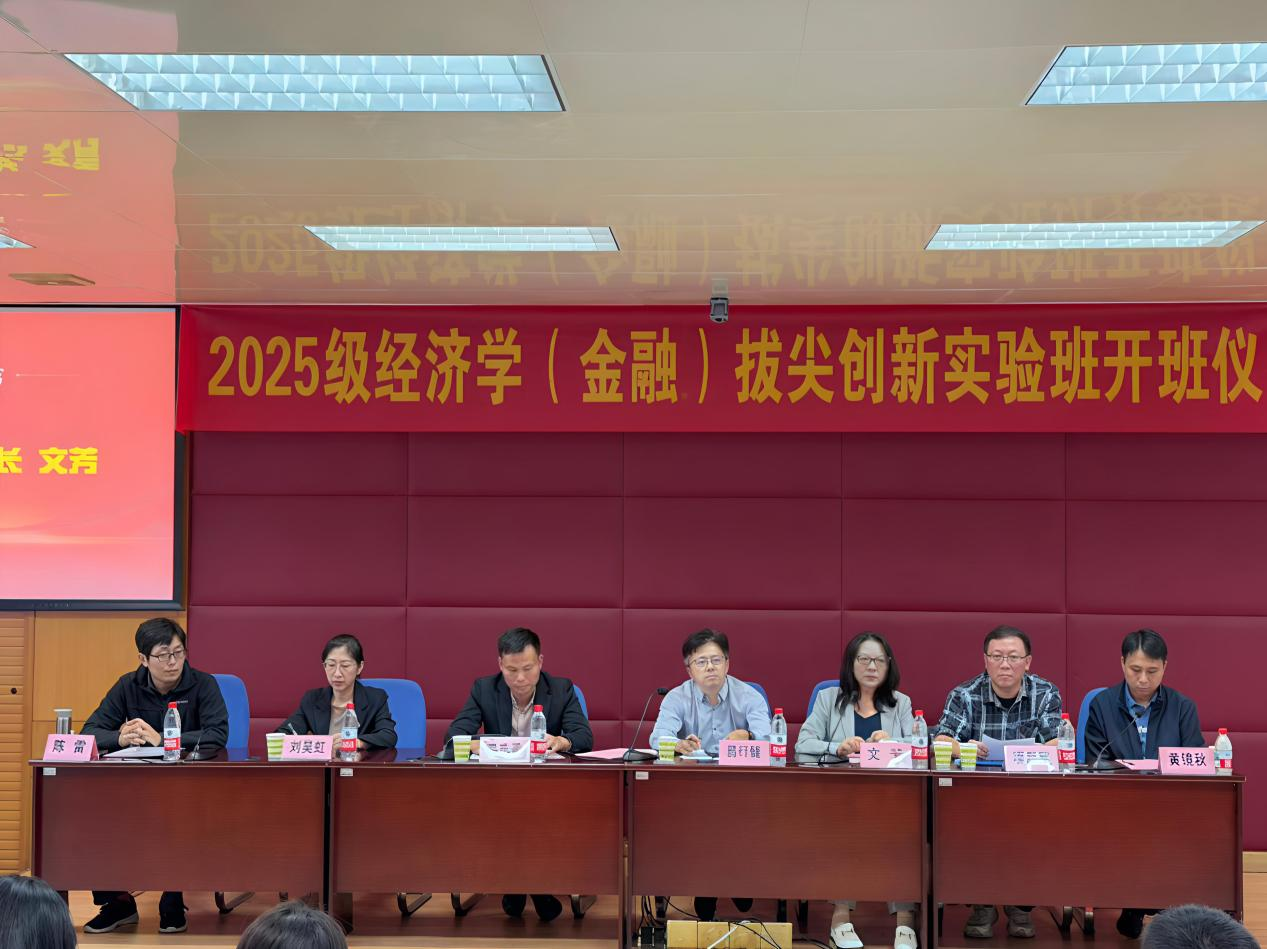 2025年10月24日下午,公司2025级经济学(金融)拔尖人才培养创新实验班开班仪式在行政楼五楼大会议室举行,董事长易行健出席开班仪式并讲话。公司教务处、员工处、9428cn太阳集团古天乐主要负责人、系主任、班主任、辅导员以及2025级经济学(金融)拔尖人才培养创新实验班全体员工参加开班仪式。仪式由公司党委副书记黄镜秋主持。