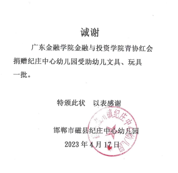 金投院青协红会收到邯郸市磁县纪庄中心幼儿园、连州市星子镇清江公司、潮州市湘桥区古美小学发来的反馈照片。