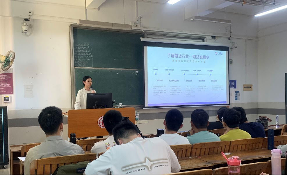 在讲座中,万玉婷回顾了期货行业的发展历史以及广发期货有限公司的发展历程、组织架构、业务范围等基本情况,并总结了在求职过程中所需要注意的事项,包括简历制作、面试准备、面试技巧等,通过行业警示案例重点强调了同学们不仅要提升专业技能,还应该注重金融职业道德与职业操守的培养。最后,与同学们展开热烈的讨论。