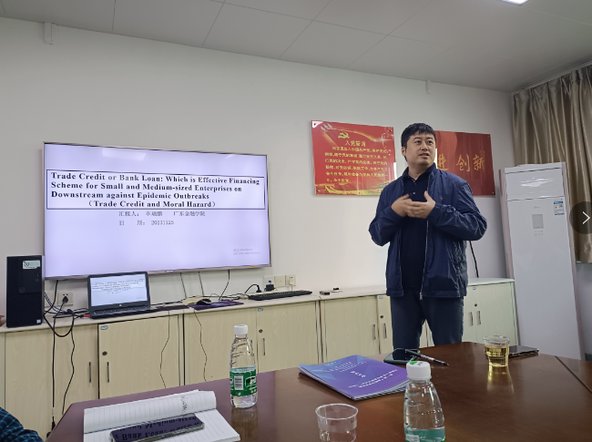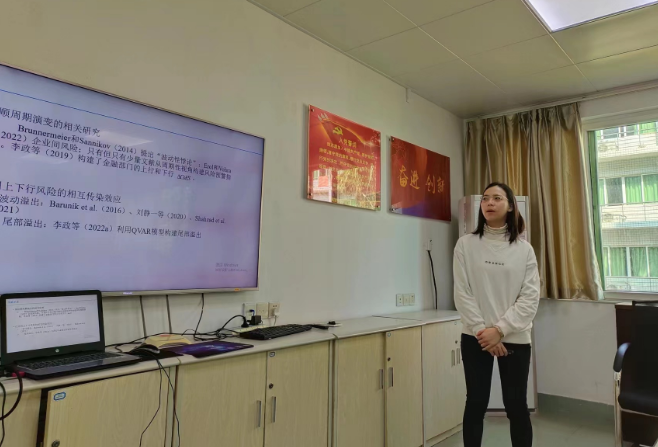 公司22级金融硕士研究生唐敏敏汇报了与郑荣年副教授合作撰写的论文,通过对《资管新规》政策效果的探讨,对于完善我国金融监管体系具有一定的借鉴意义。南京农业大学9428cn太阳集团古天乐张翔博士研究生在实证检验、测度指标、文章细节等方面提出了修改建议。