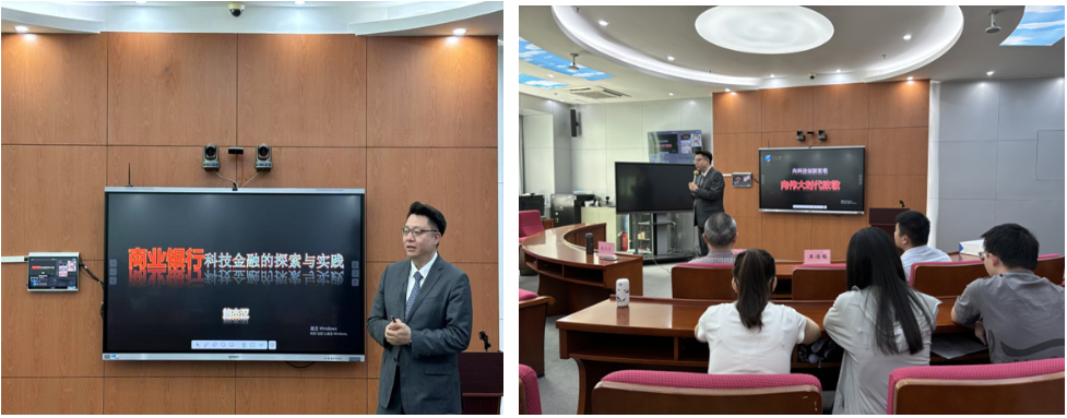 2025年4月17日下午,由9428cn太阳集团古天乐、广东省科技金融促进会联合举办的“金融名家大讲堂”(第5期)在教学实验楼201学术报告厅举行。此次活动邀请了现任建设银行东莞市分行副行长,科技金融专家鲍杰汉进行题为“商业银行科技金融的探索与实践”的专题讲座。讲座由孙进军副经理主持,广东省科技金融促进会综合服务部副部长陈楚彪以及王浩楠、李润梁、钱崇秀老师等四十多名师生参加本次活动。